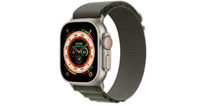 Relógio inteligente Apple Watch Ultra [GPS + celular 49 mm] com caixa de titânio robusta e Alpine Loop verde médio. Rastreador de atividades físicas, GPS de precisão, botão de ação, duração extra longa da bateria, tela Retina mais brilhante